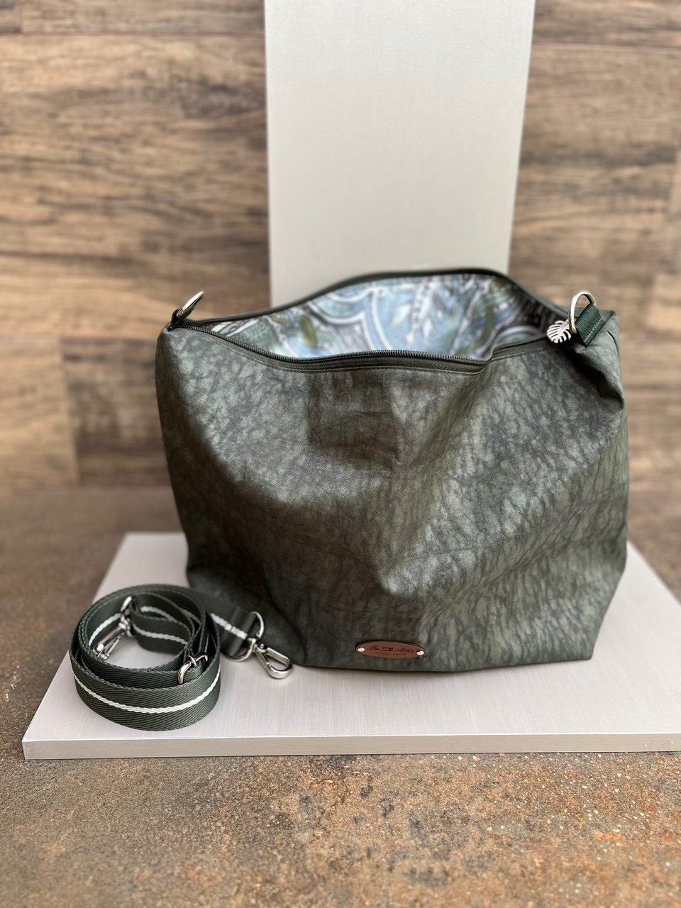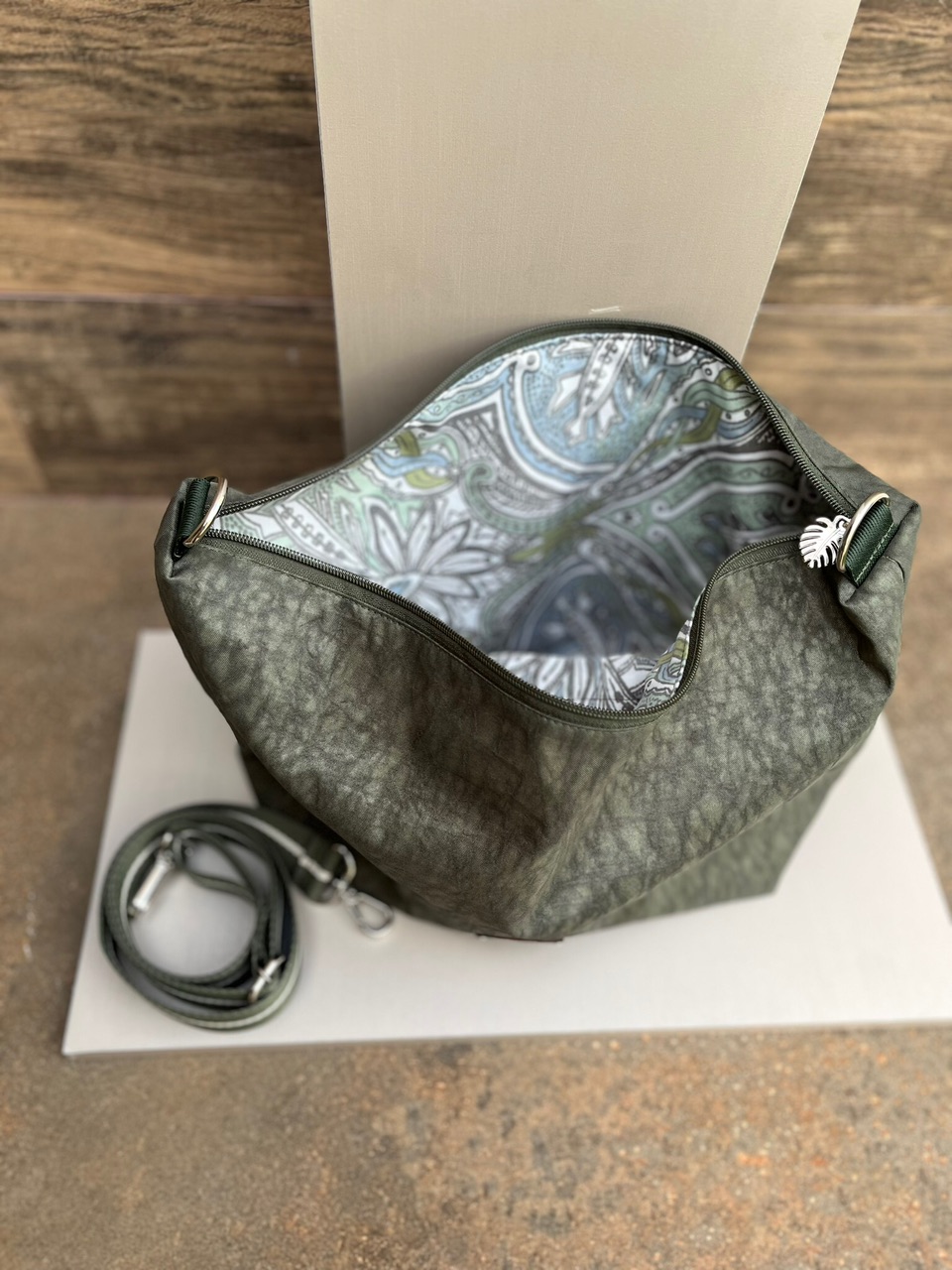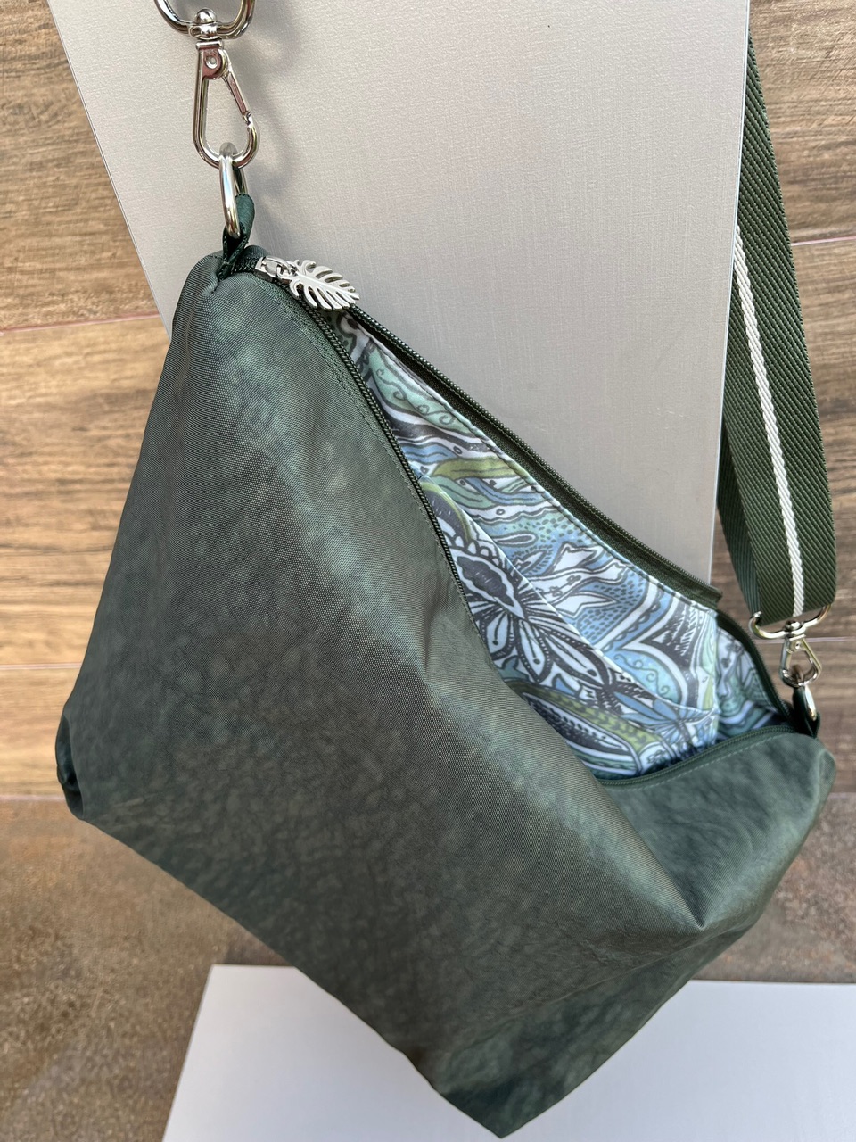 🌿 Bolsa Lírio Verde: feita em nylon amassado superleve, espaçosa e com alças que mudam em segundos, pode ser usada no ombro ou transversal, você escolhe! ✨A bolsa Lírio acompanha 1 alça. -Material, Nylon amassado, forração interna pipeline. -Cor azul marinho parte externa e estampado azul com branco forro interno. -42 x 14 x 25cm. -Alça 1,40cm, cor azul com listras vermelhas ou totalmente azul.